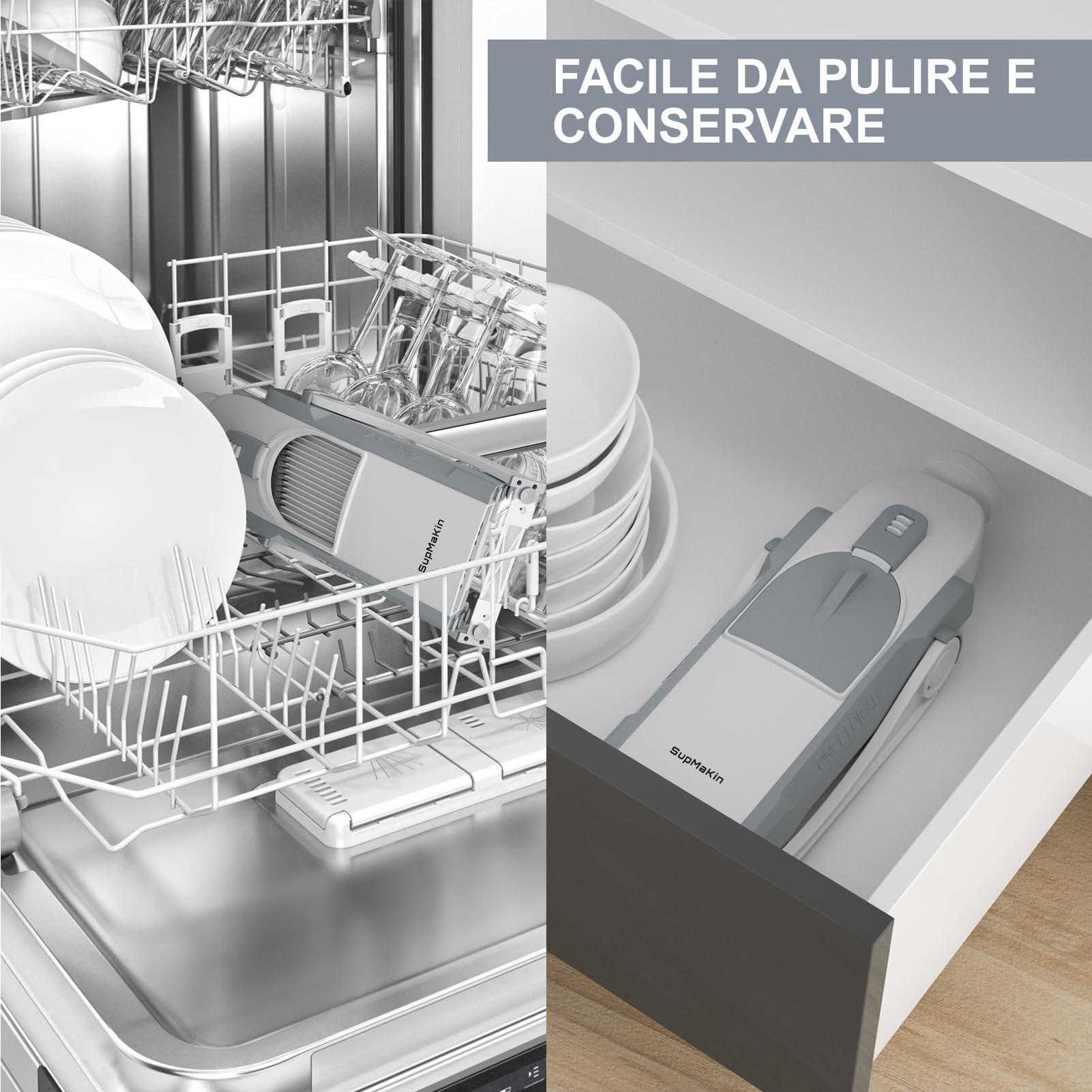 Stufo di tagliare verdure a mano? Questa grattugia rotante è la soluzione che fa per te! Con 3 lame diverse, affetta, grattugia e trita in un attimo patate, carote, formaggio, cetrioli e persino noci. Basta girare la maniglia e il gioco è fatto: risparmi tempo e fatica in cucina. È super facile da montare e pulire (lavabile in lavastoviglie!), e grazie al design sicuro, non rischi di tagliarti le dita. Realizzata in materiale senza BPA, è sicura per gli alimenti. Perfetta per insalate, preparazioni veloci o per stupire gli ospiti con piatti ben presentati. Un alleato indispensabile in cucina!Caratteristiche e scheda tecnica