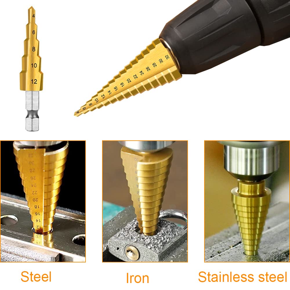 BAURIX® Fresa A Gradini RHINO® Per Metalli, Legno E Plastica - Ø 5-35mm Con Albero Triangolare 10mm - Perfetta Per Trapani Standard