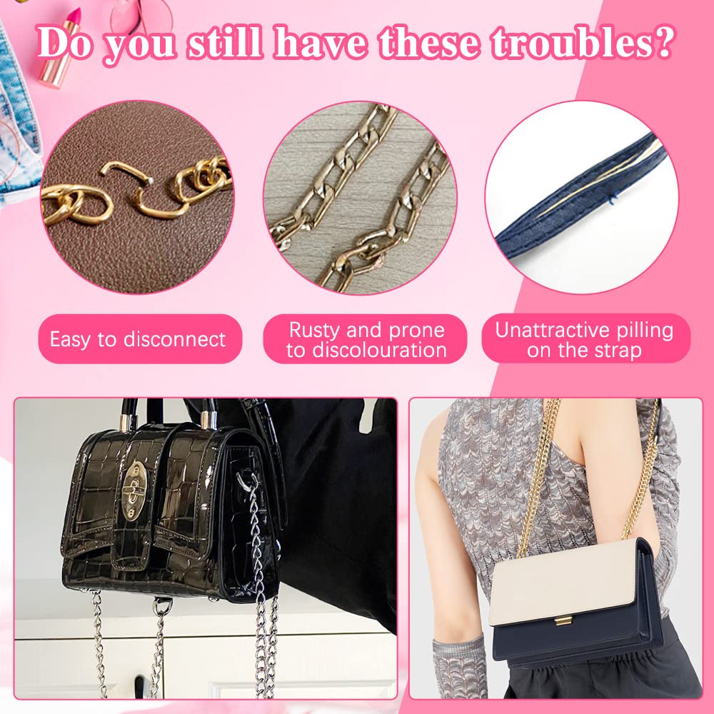 2 Catene Per Borsa Tracolla 120cm - Cinturino Sostituzione In Metallo Con Fibbie Oro E Argento