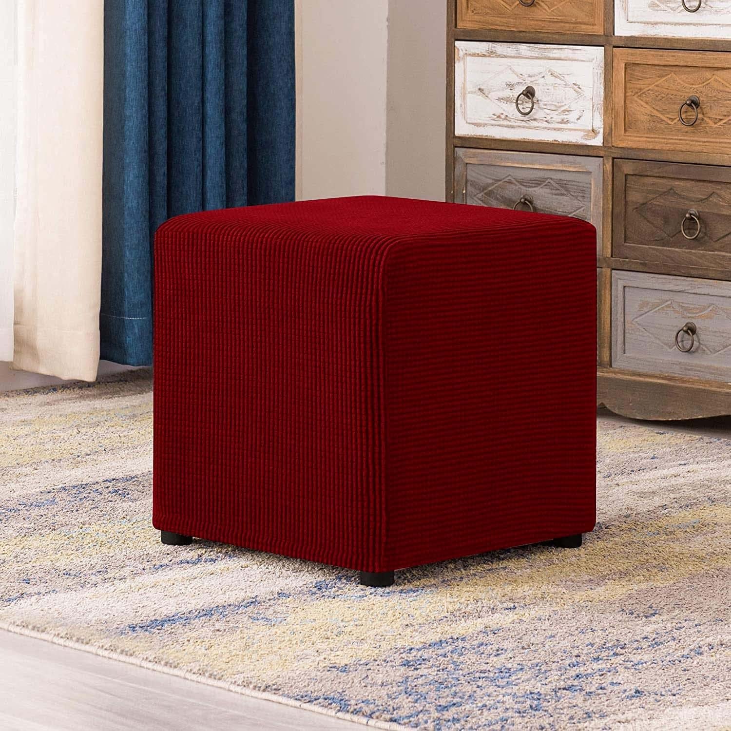 Copri Pouf Rettangolare Elasticizzato - Fodera In Velluto Per Ottomano E Poggiapiedi