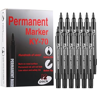 12 Pennarelli Indelebili Nero Punta Grossa 2mm - Ricaricabili, Impermeabili, Per Superfici Multiple