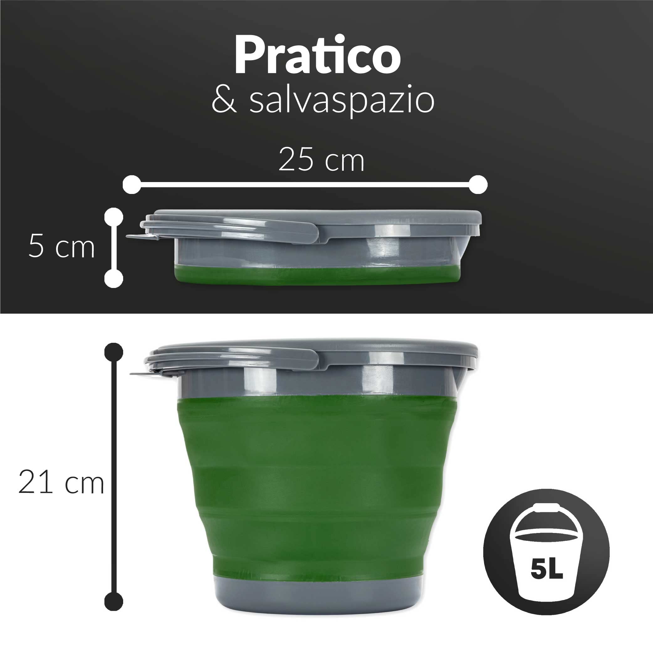 Hai bisogno di un secchio pratico che non occupi spazio? Questo secchio pieghevole da 5 litri è geniale! In materiale PP+TPE, si piega fino a 21,5x5,5cm - entra ovunque. Leggero, resistente e facile da pulire. Con maniglia comoda e foro per appenderlo. Perfetto per pulizie domestiche, lavaggio auto, campeggio, spiaggia, pesca o anche per rinfrescare bevande alle feste. Senza BPA e multifunzionale. Un must-have per chi ama l'ordine e la praticità!Caratteristiche e scheda tecnica