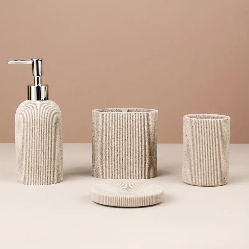 Trasforma il tuo bagno con questo elegante set da 6 pezzi in stile terrazzo! Include dispenser, portaspazzolino, bicchiere, portasapone, portascopino e pattumiera. Realizzato in plastica di qualità, è facile da pulire e adatto per casa, ufficio o hotel. Design moderno che aggiunge un tocco di classe e ordine. Regalo perfetto per amici o colleghi. Personalizza il tuo spazio con store BM per altri accessori coordinati!Caratteristiche e scheda tecnica
