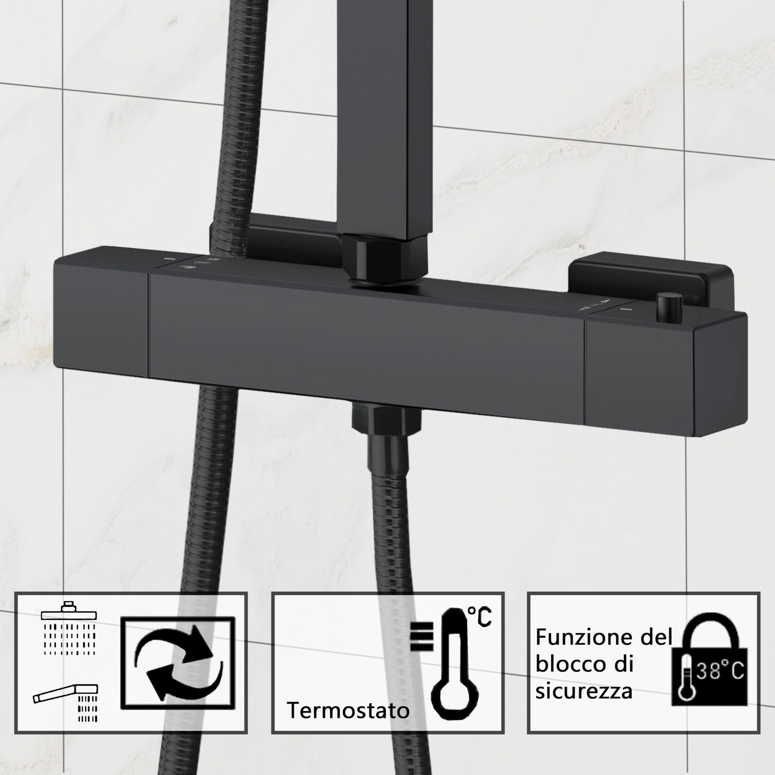 Questo soffione doccia BOCHION è proprio quello che ci vuole per trasformare il tuo bagno in una spa! Ha 3 modalità di getto: massaggiante (per un getto potente e concentrato), miscelazione (per una pulizia delicata ma efficace) e pioggia (perfetto per bambini e animali). Con 344 fori d'acqua laser, l'acqua esce sottile e morbida, senza irritare la pelle. Il design a risparmio idrico ti fa consumare fino al 60% in meno di acqua, ma con la stessa pressione piacevole. Ruota a 360° e si inclina di 50°, così lo regoli come vuoi. Il tubo è da 2 metri, universale per quasi tutti i rubinetti. Si smonta facilmente per pulirlo dal calcare. Cromato, elegante e duraturo. Include anche una modalità pistola per pulire il bagno o il WC. Pratico, efficiente e di design!Caratteristiche e scheda tecnica
