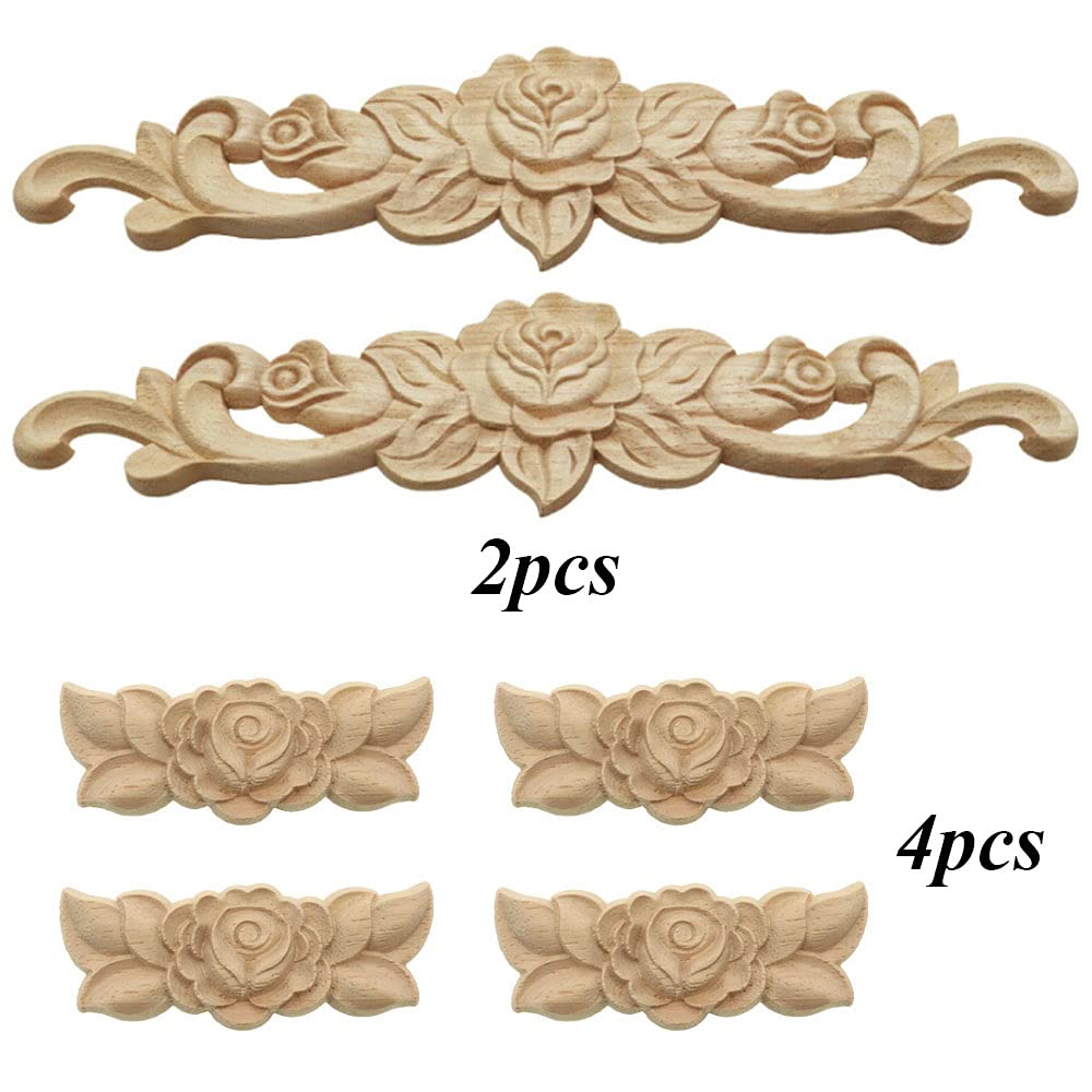 Decorazioni Legno Intagliato MUXSAM - 2 Pezzi Fiori Scolpiti 5-6 Cm Per Mobili E Pareti