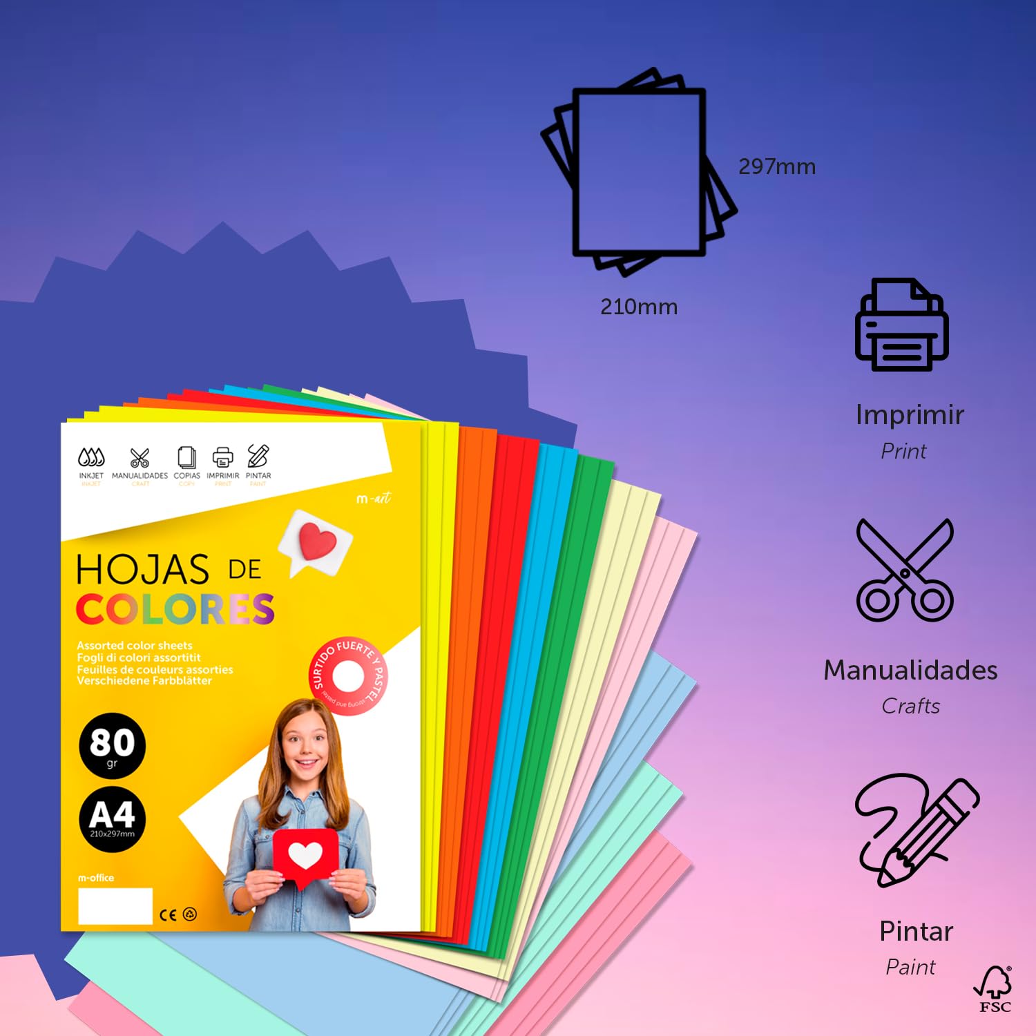 Dai colore ai tuoi progetti con questa carta Landré! Confezione da 250 fogli A4 in 10 colori diversi (25 fogli per colore), grammatura 80 g/m². Perfetta per stampanti laser e a getto d'inchiostro, fotocopie, fax, ma anche per lavoretti fai da te, lettere o decorazioni. Prodotta in Germania, certificata Blauer Engel (eco-friendly). Lascia correre la creatività in ufficio, a scuola o a casa. Qualità tedesca a prezzi accessibili. Ordina ora e divertiti!Caratteristiche e scheda tecnica