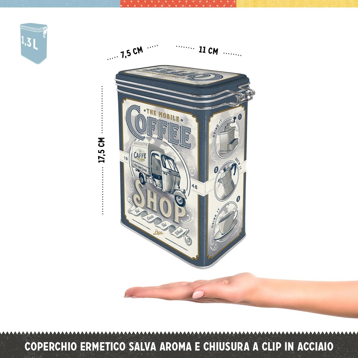 Cercavi un regalo originale per un appassionato di Ford Mustang? Questo salvadanaio retrò è perfetto! Con il logo Horse & Stripes stampato in alta qualità, ha un design vintage che ricorda le muscle car anni '60. Fatto di metallo con finitura opaca e anelli in rilievo, è tanto bello da vedere quanto pratico: contiene fino a 600ml di monete o banconote. Il coperchio è removibile e la fessura è larga, facile da usare. Misura 9,3x11,7cm, è compatto ma capiente. Prodotto con licenza ufficiale, è un pezzo da collezione che unisce utilità e stile. Perfetto per compleanni, feste o solo per dire 'ti penso'!Caratteristiche e scheda tecnica