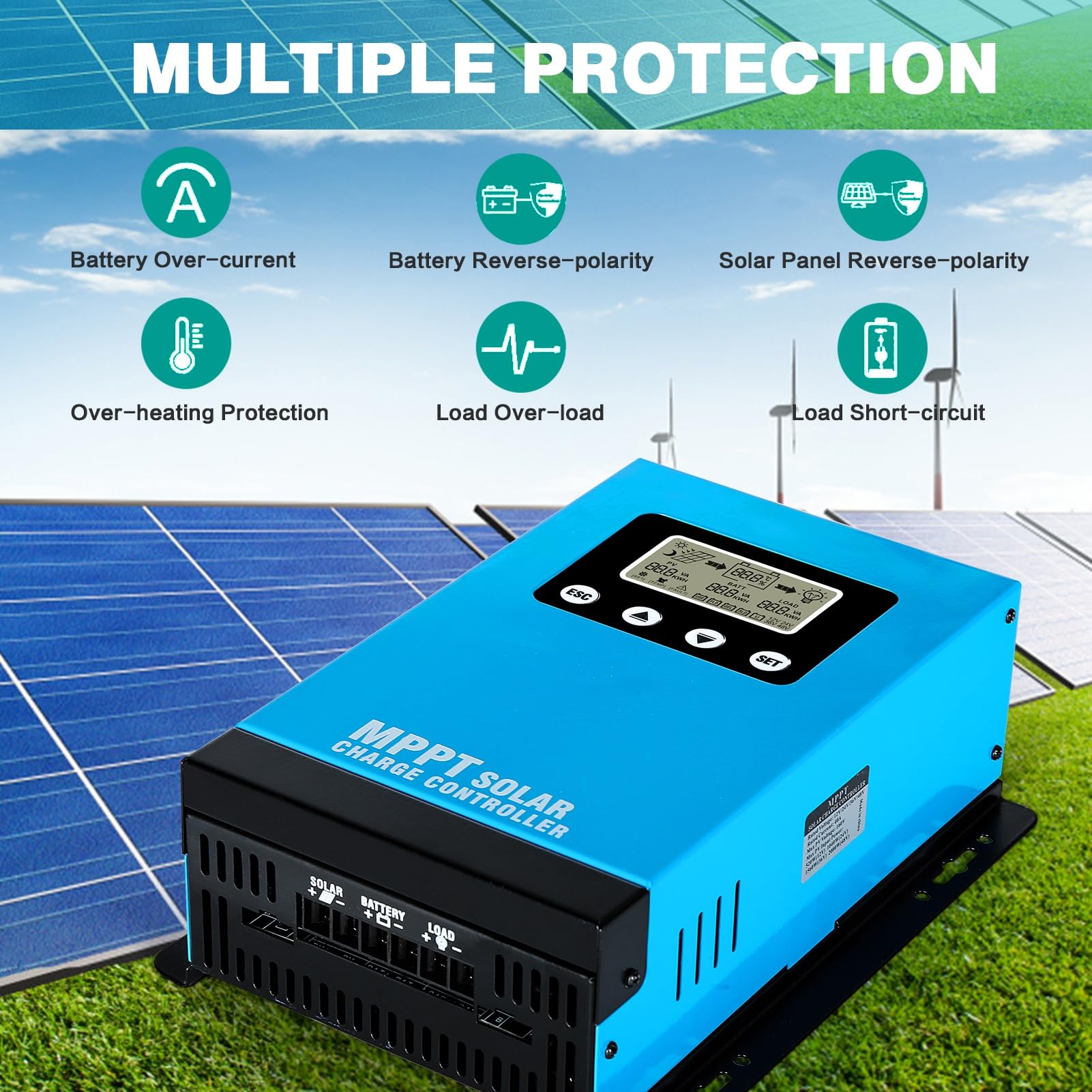Questo regolatore di carica solare è un amico fidato per i tuoi impianti a energia solare! Gestisce batterie 12V o 24V in automatico, ha un display LCD chiaro che mostra tutti i dati di funzionamento e include protezioni da cortocircuito, sovraccarico e inversione di polarità. C'è anche una porta USB da 5V/2A per caricare smartphone e dispositivi. Il chip industriale lo rende affidabile e durevole nel tempo, adatto per uso domestico, in camper, barche o piccoli impianti. Si installa facilmente e va posizionato in un posto ventilato perché può scaldarsi durante l'uso. La corrente di standby è bassissima, così non sprechi energia. Manuale in italiano incluso. Perfetto per chi vuole autonomia energetica senza complicazioni!Caratteristiche e scheda tecnica