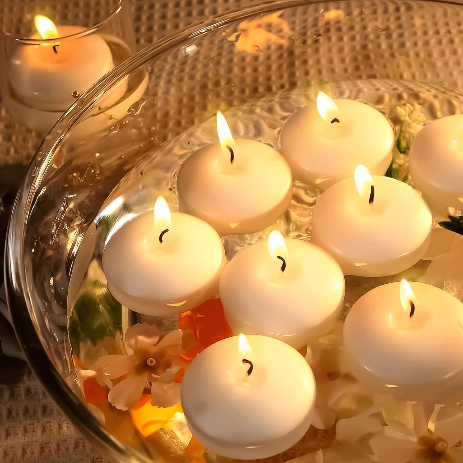 Queste candele galleggianti sono perfette per creare un'atmosfera romantica! In confezione da 50, color rosa oro metallizzato, diametro 4 cm. Le metti in una ciotola con acqua e illuminano tutto con una luce calda e accogliente. Ideali per matrimoni, cene romantiche, feste o semplicemente per decorare casa. Bruciano per circa 2 ore. Abbinalo a fiori o petali per un effetto wow. Economiche, eleganti e facili da usare. Trasforma qualsiasi occasione in un momento magico!Caratteristiche e scheda tecnica