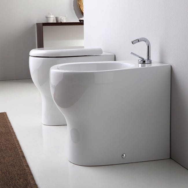 WC Sospeso Senza Bordo Con Bidet - Ceramica Bianca Design Moderno