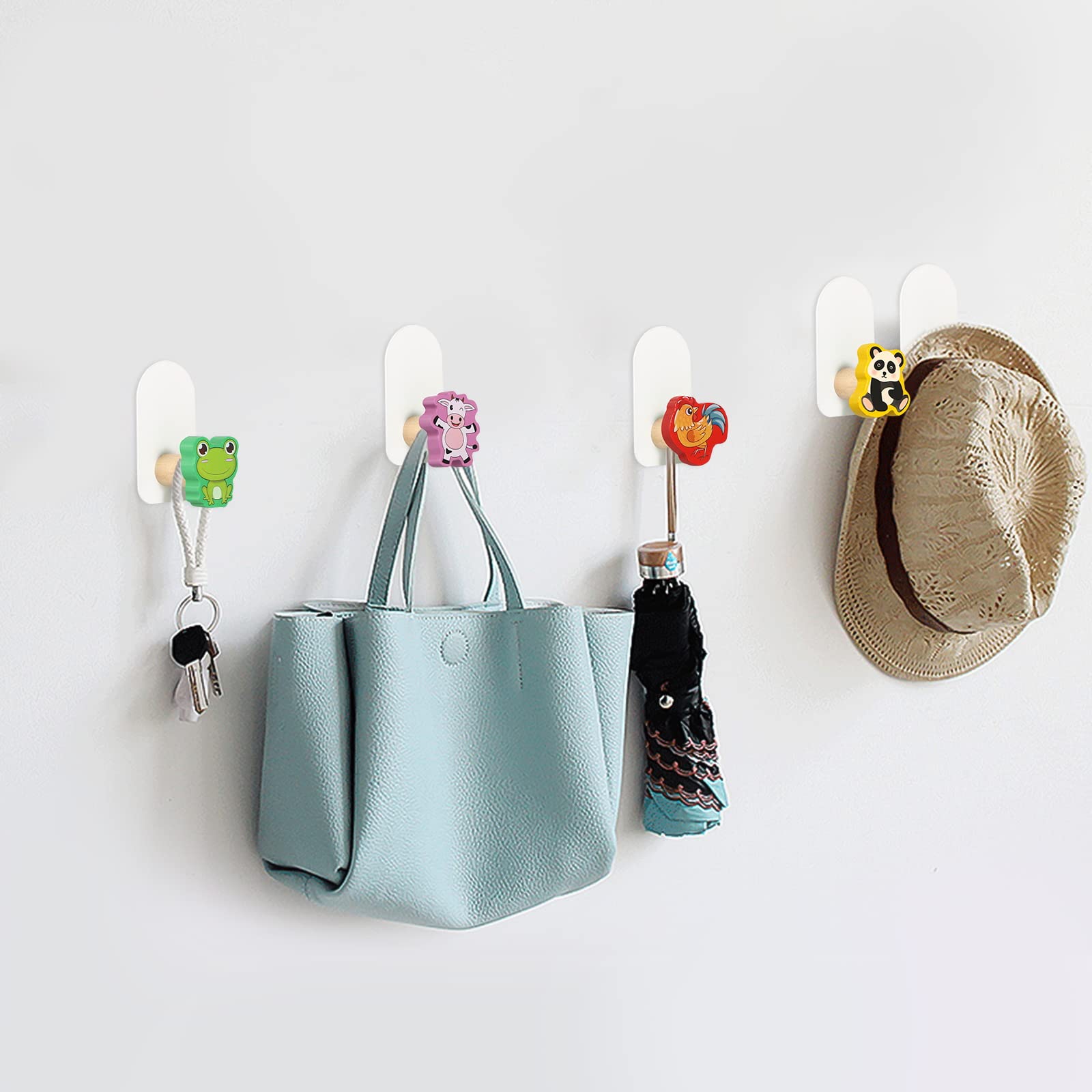 Ganci Appendiabiti In Legno - Set Di 4, Doppio Gancio, Per Parete, Capacità 8kg