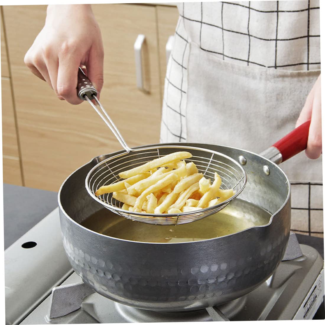 Cuochi, questo scolapasta vi salverà dalle scottature! Si appoggia direttamente sulla pentola (fino a 26 cm di diametro) e scola pasta, riso o verdure in sicurezza. I manici sono sagomati per una presa salda, e i fori sono numerosi per far uscire tutta l'acqua. Resiste fino a 190°C, è in acciaio inox durevole e facile da pulire (lavabile in lavastoviglie). Il bordo arrotondato garantisce una buona tenuta, e le dimensioni sottili lo rendono facile da riporre. Perfetto per casa o ristorazione, con garanzia di 5 anni. Misure: 33,7x13x0,9 cm. Un alleato indispensabile in cucina!Caratteristiche e scheda tecnica