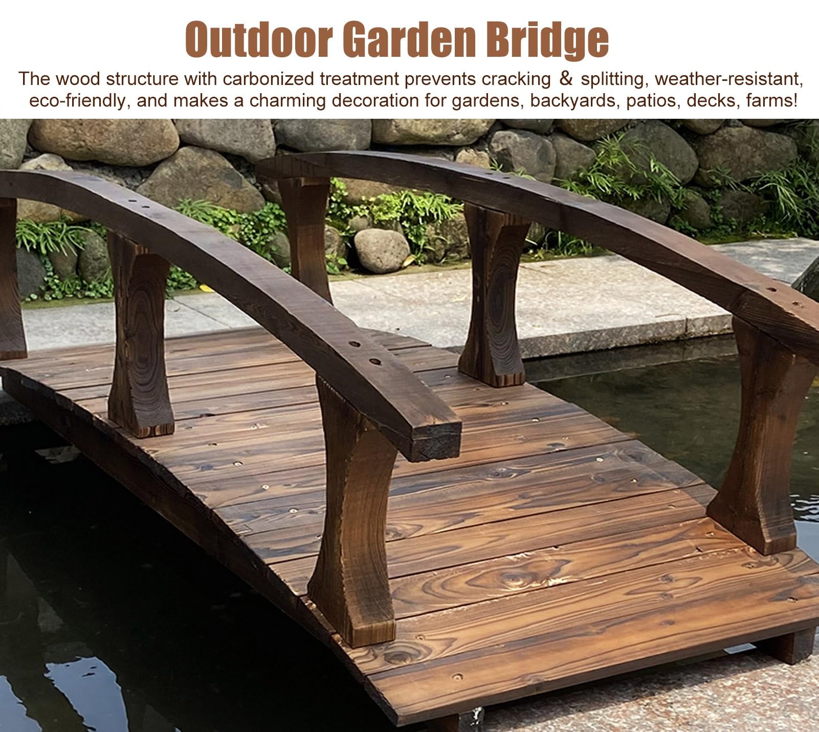 Trasforma il tuo giardino con questo ponte ad arco Outsunny! In legno di abete massello, resistente alle intemperie. Dimensioni 185x72x58 cm, supporta fino a 200 kg. Perfect per laghetti, ruscelli o come elemento decorativo. Montaggio semplice, stile classico ed elegante. Goditi la natura in stile!Caratteristiche e scheda tecnica