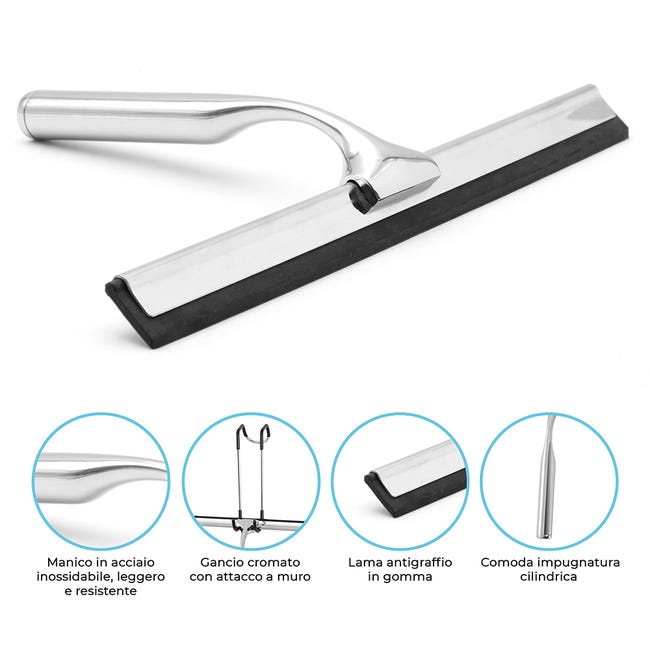 Odio le macchie d'acqua su vetri e pavimenti? Questo tergivetro retrattile è la risposta! Si estende da 45 a 153 cm, così puoi pulire senza piegarti. La lama in gomma di alta qualità rimuove gocce, calcare e sporco senza lasciare aloni o striature. Perfetto per docce, specchi, finestre, piastrelle e persino auto. Il manico in alluminio è antiruggine e antiscivolo. Design senza perforazione, facile da usare e riporre. Finalmente una pulizia rapida ed efficace. Provalo e dimenticherai per sempre le fastidiose macchie!Caratteristiche e scheda tecnica