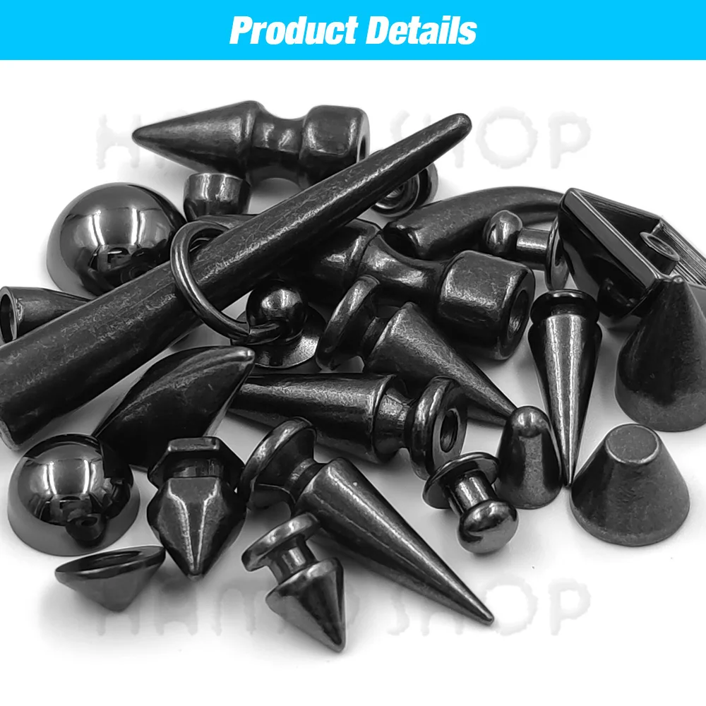 Dai un tocco rock ai tuoi capi con queste borchie a punta! Confezione da 30 set in due misure: 20mm e 40mm, in metallo argentato. Perfette per decorare giacche, jeans, borse, cinture o accessori in pelle. Facili da applicare, rimovibili e riutilizzabili. Ideali per costumi, cosplay o per personalizzare il tuo stile. Mostra la tua personalità!Caratteristiche e scheda tecnica