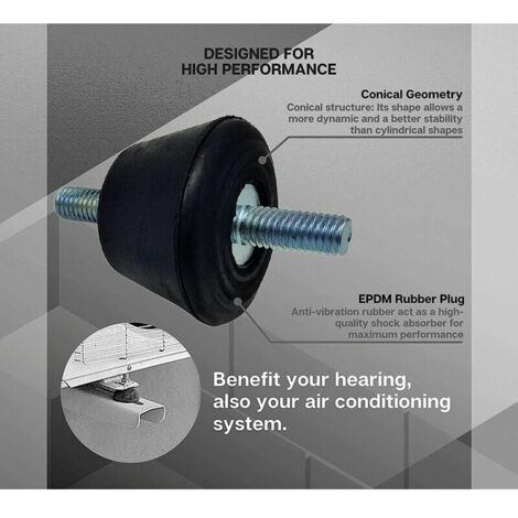 Set di 4 supporti in gomma con inserto metallico M6, per ridurre vibrazioni e rumori in auto, motori o apparecchiature. Dimensioni VV20x10 M6x18. Facili da installare, migliorano stabilità e durata dei componenti. Ideali per uso industriale o meccanico.Caratteristiche e scheda tecnica
