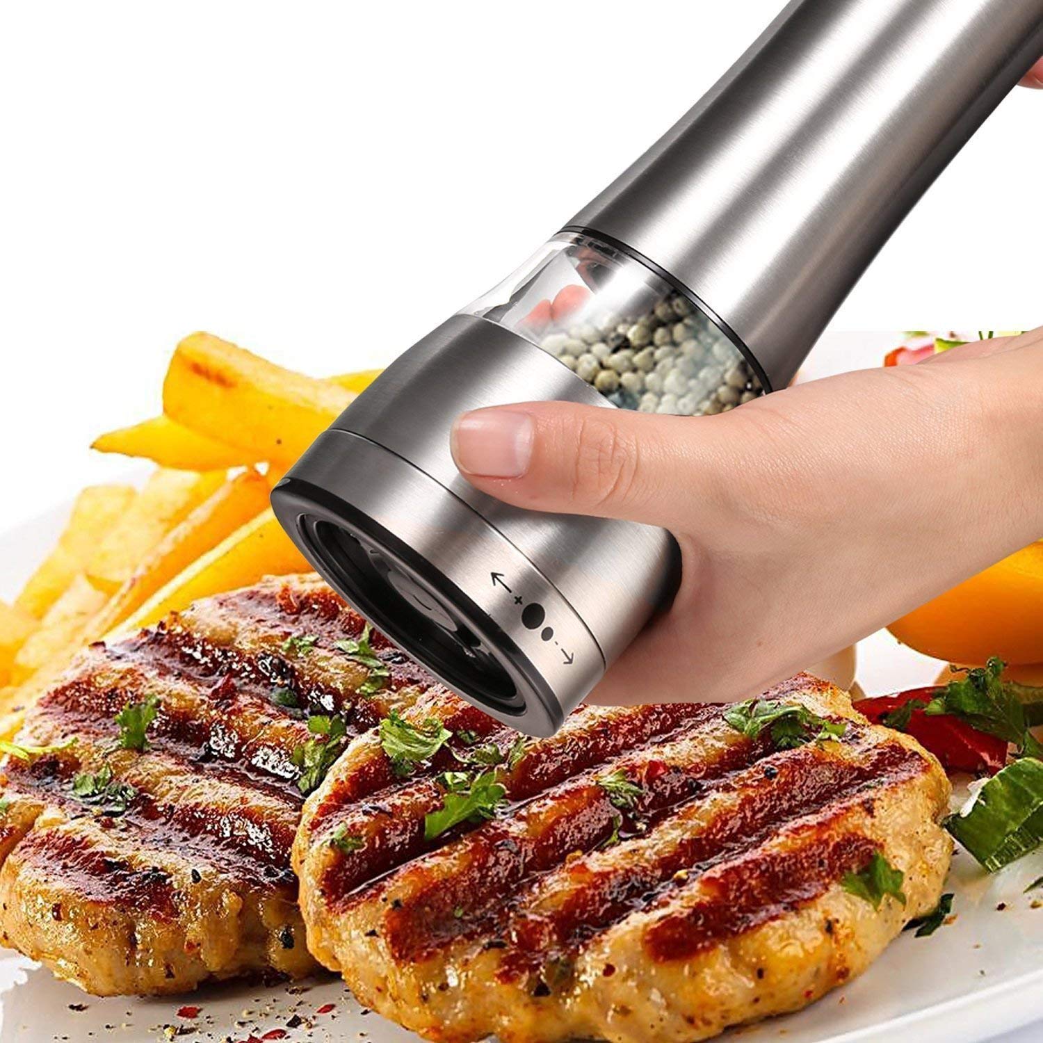 Rivoluziona la tua cucina con questo macina sale e pepe elettrico Sangcon! Design elegante in argento, capacità XL (251g sale, 135g pepe). Ricaricabile via USB, funzionamento a gravità con una mano. Regolazione della macinatura con nucleo in ceramica, luce LED blu integrata. Materiale acrilico alimentare BPA-free, facile da pulire. Perfetto per pepe, sale e spezie varie. Ideale per uso domestico, regali o chef. Garanzia 100 giorni e assistenza clienti. Un accessorio chic e pratico per appassionati di cucina!Caratteristiche e scheda tecnica