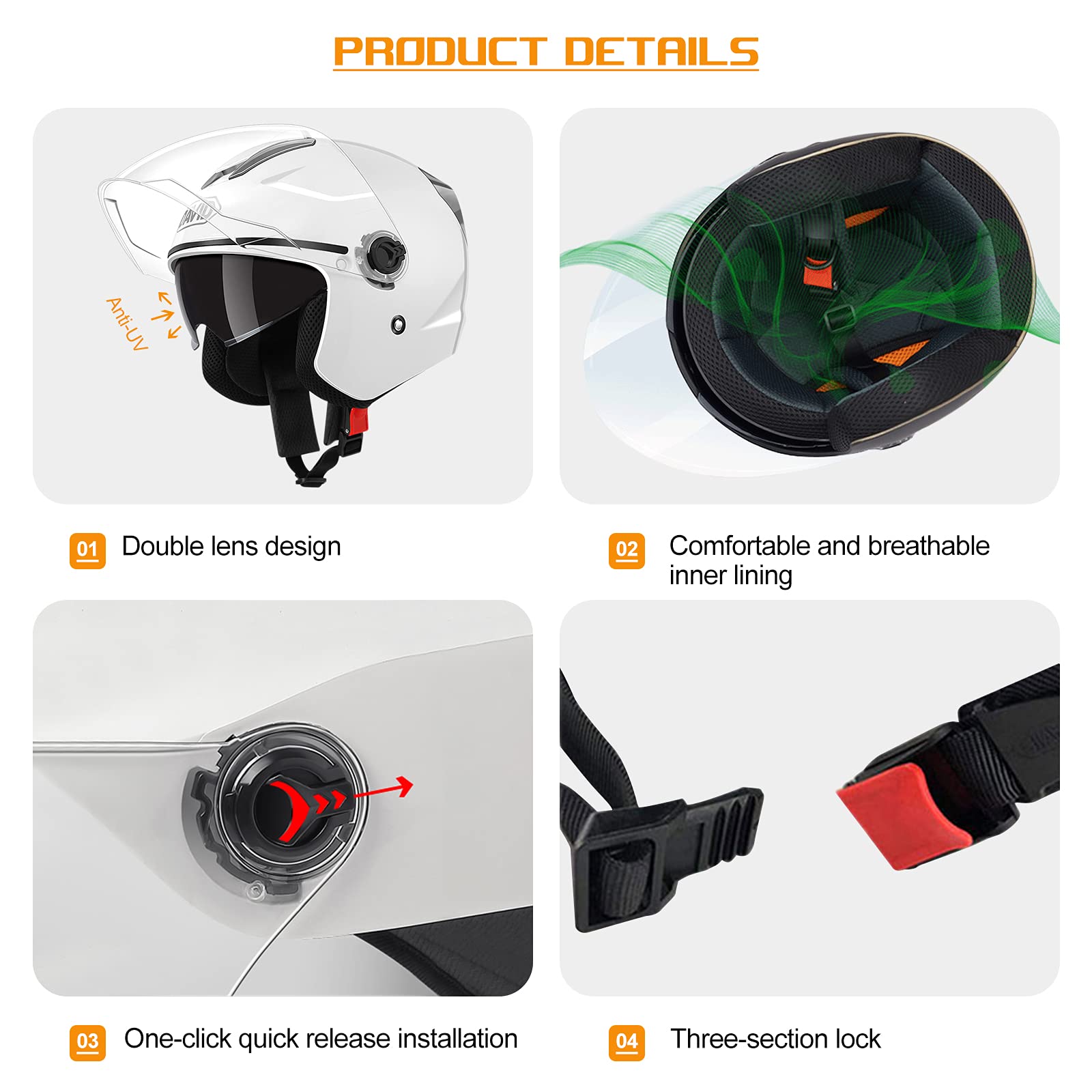 Questo casco semi-aperto è ideale per chi guida scooter o moto e vuole un po' di aria senza rinunciare alla sicurezza. Guscio in ABS resistente, finitura opaca nera, sottogola regolabile con fibbia a D. Leggero, comodo e dal design cool. Perfetto per city use o per giri tranquilli. Proteggi la testa senza sentirla pesante!Caratteristiche e scheda tecnica