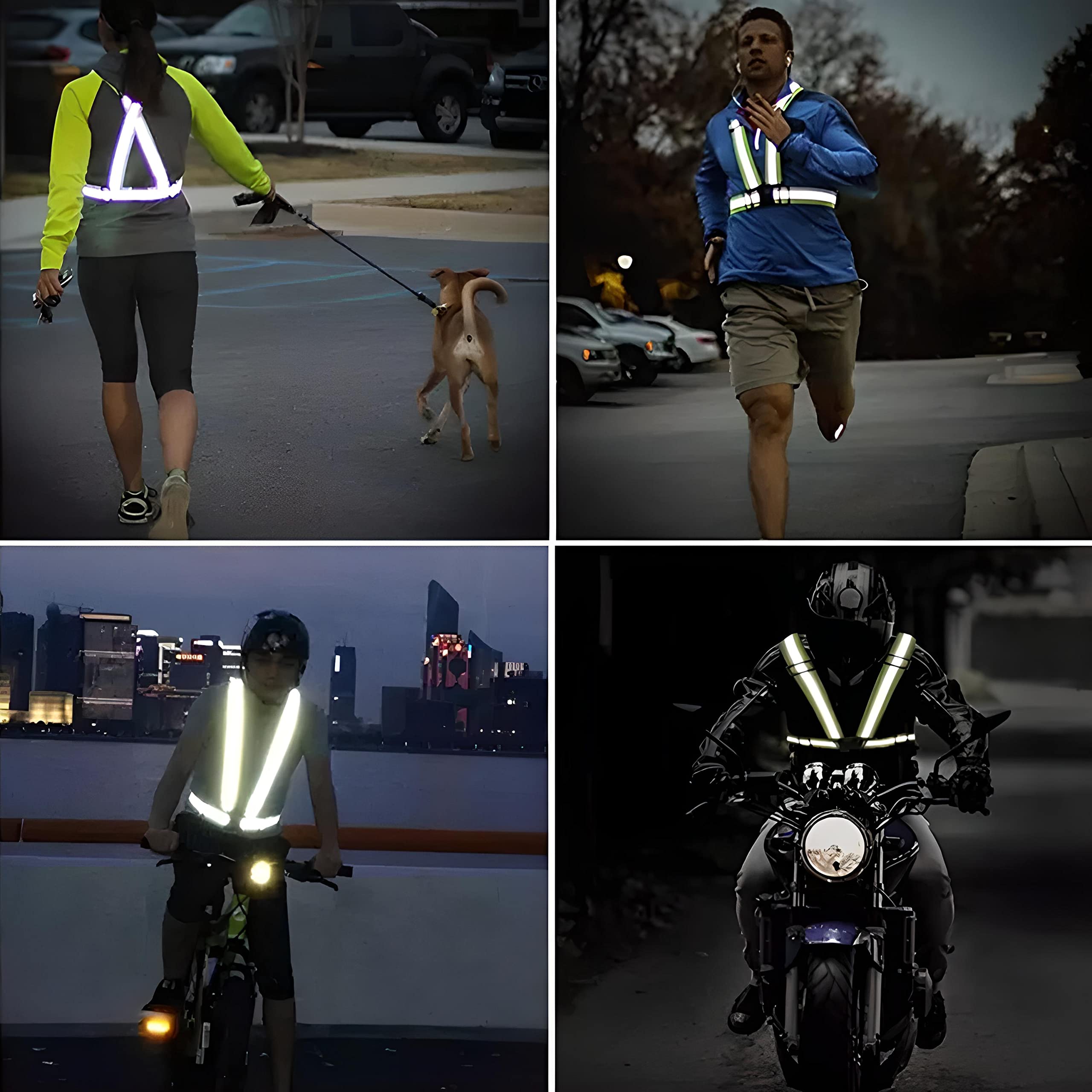 Mettiti in luce quando corri o vai in bici di notte! Queste fasce LED sono ricaricabili via USB, con 3 modalità (fisso, lampeggio lento/veloce). Impermeabili, regolabili e comode da indossare. Una carica dura 6-8 ore. Perfette per sicurezza visiva. Package include 2 fasce e cavo doppia ricarica. Non serve comprare batterie! Essere visibili è essere sicuri. Provale e goditi le tue attività notturne con tranquillità.Caratteristiche e scheda tecnica