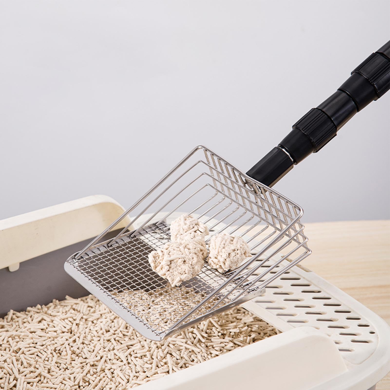 Paletta Lettiera Gatti In Acciaio Inox - Doppio Setaccio 4mm/10mm, Manico Legno, Profonda E Resistente