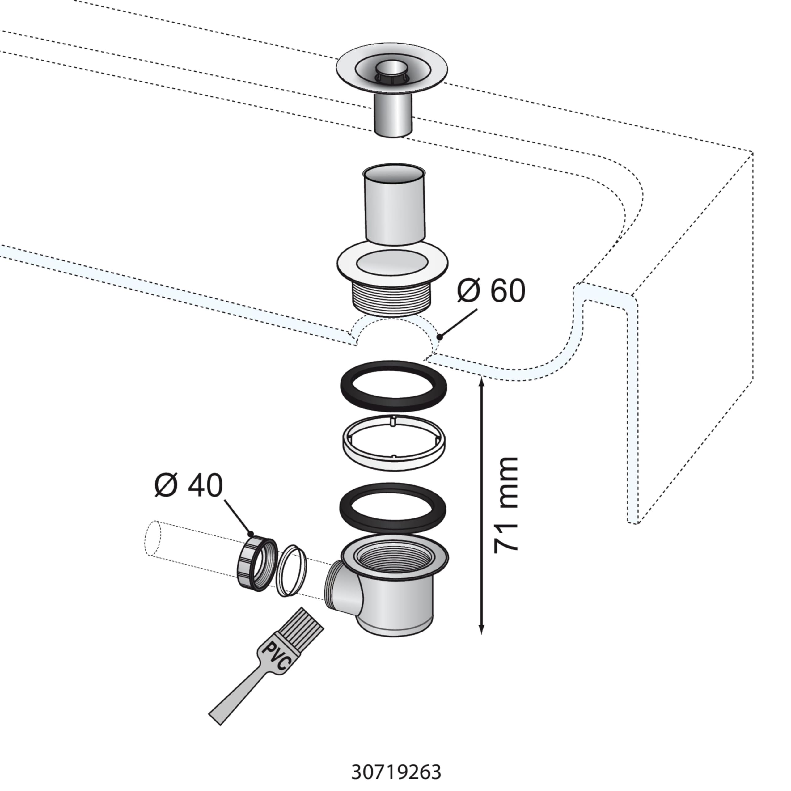 Piletta Universale Per Lavelli - Diametro 70mm, Con Troppo Pieno Telescopico - Uscita 1 1/2'', In Acciaio Inox