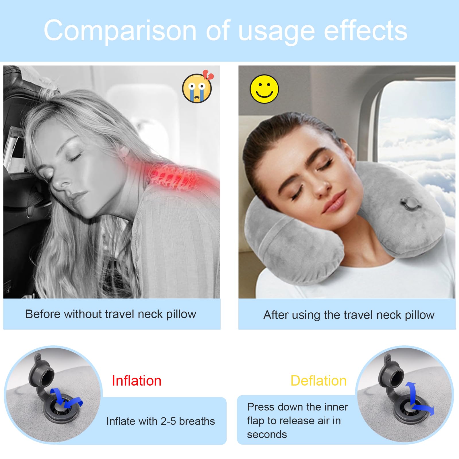 Viaggi spesso? Questo cuscino gonfiabile per il collo è un salva-vita! Design a forma di U ergonomico, in morbida pelle scamosciata, con gonfiaggio e sgonfiaggio rapidi. Regola la durezza come preferisci. Federa rimovibile e lavabile, include maschera per occhi e tappi per orecchie. Leggero e portatile, perfetto per aerei, treni, auto, ufficio. Dormi comodamente ovunque! Ideale per chi soffre di dolori al collo.Caratteristiche e scheda tecnica