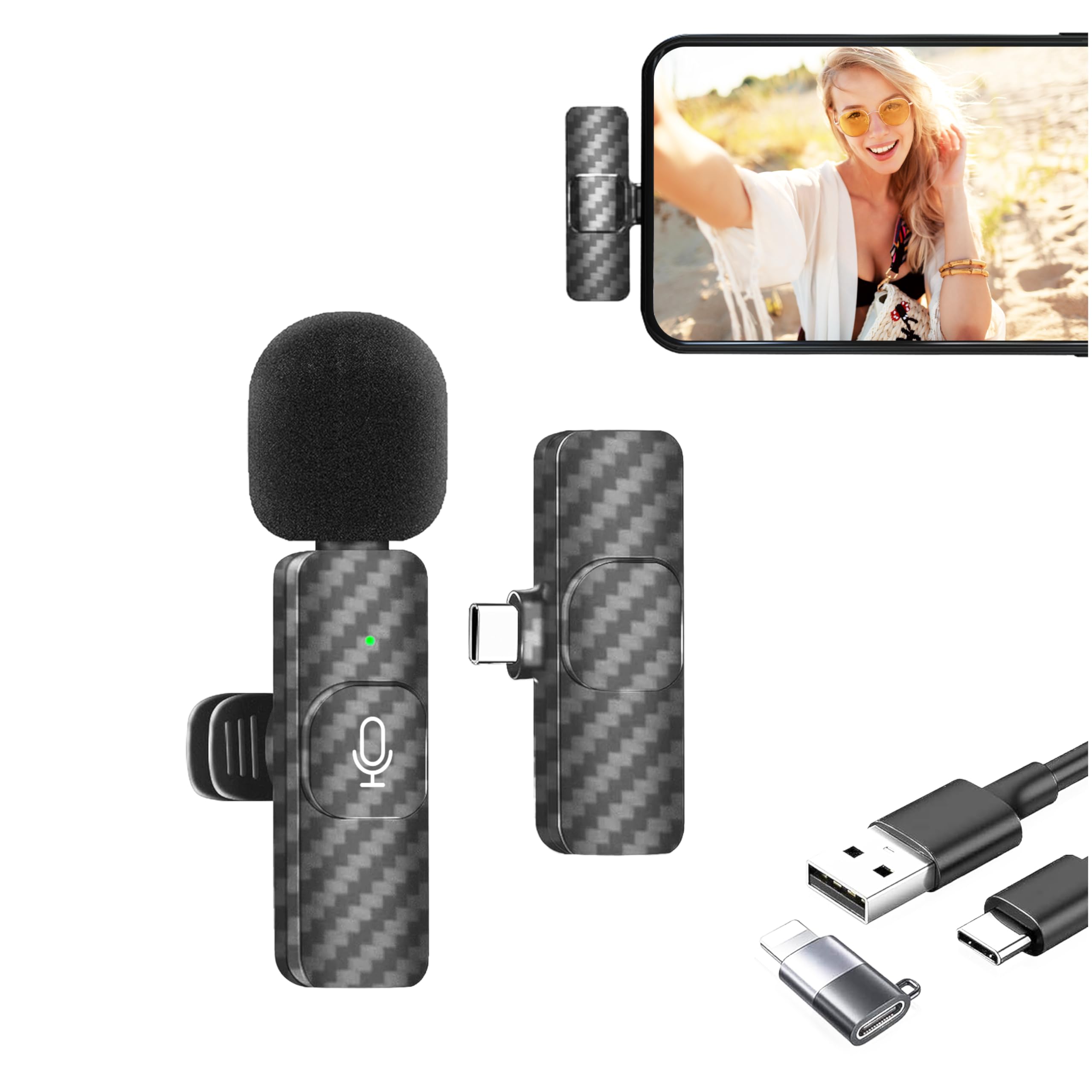 Per video e vlog di qualità professionale! Questo microfono lavalier wireless ha due microfoni con riduzione rumore e un ricevitore universale (USB-C, 3,5mm, USB). Si collega a iPhone, Android, telecamere, PC e Mac senza bisogno di app o Bluetooth. Copre fino a 20 metri, batteria da 6 ore, e include custodietta, cavi e retine antivento. Audio cristallino anche in ambienti rumorosi. Essenziale per creator, insegnanti o chi fa video conferenze!Caratteristiche e scheda tecnica