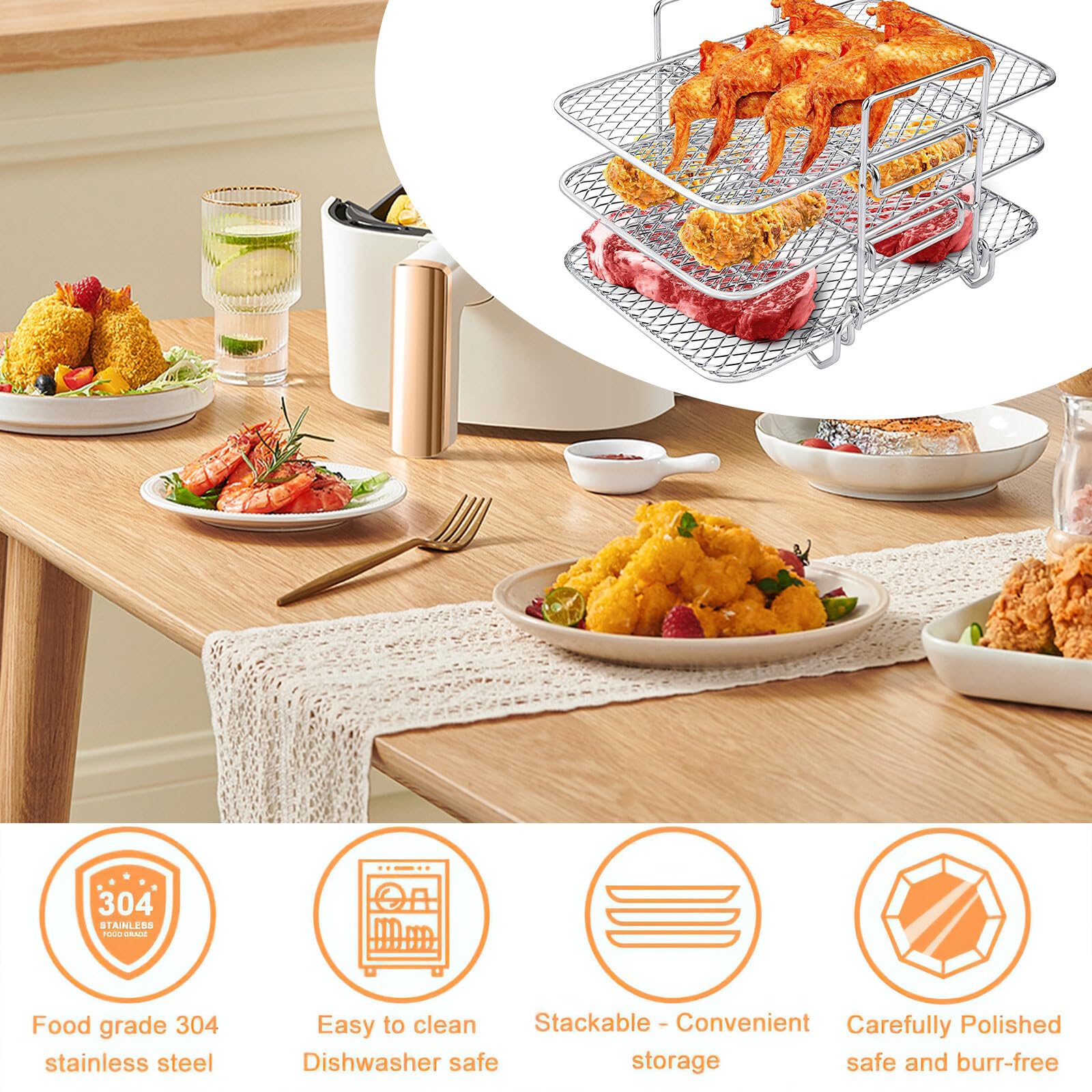 Questi stampi in silicone alimentare sono un must per la tua friggitrice ad aria! Misurano 22x22x9 cm, con fondo rialzato per far circolare l'aria e ridurre i tempi di cottura. Adatti a Moulinex 6.5L, Princess 6.5L, COSORI 5.5L e altre friggitrici a cestello quadrato. Sono atossici, resistenti al calore (fino a 230°C) e facili da pulire (lavabili in lavastoviglie). Proteggono il cestello, evitano attaccamenti e rendono la pulizia un gioco. Perfetti per cucinare in modo sano senza carta forno.Caratteristiche e scheda tecnica