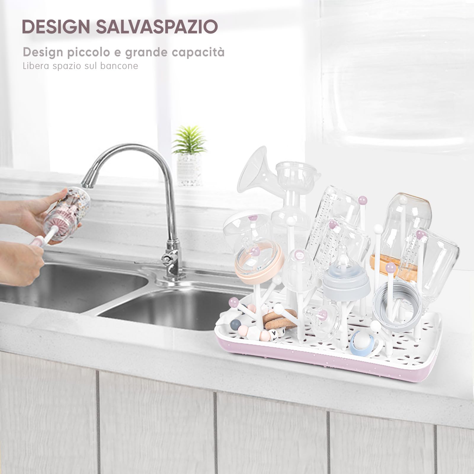 Porta Biberon Con Coperchio Antipolvere - Vassoio Asciugatura E Raccolta Gocce