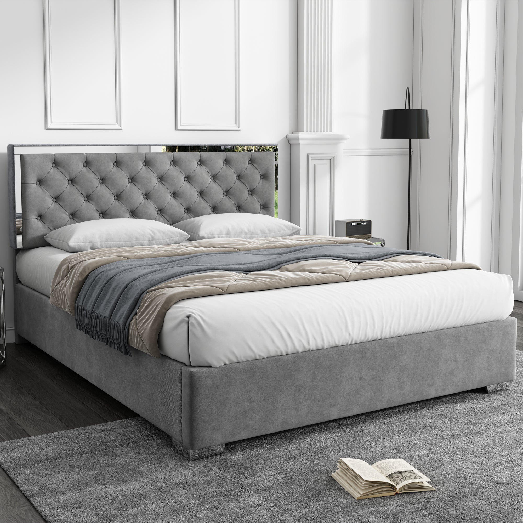 Divano Letto Pieghevole Per Bambini Pro Cosmo - Con Materasso, Cuscino E Pouf, Grigio Camion