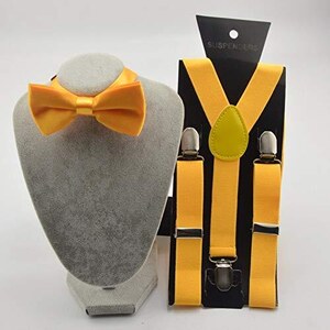 Che carinissime queste bretelline per i tuoi bimbi! Sono della Axy, hanno la classica forma a Y e vengono complete di un grazioso papillon. Sono super elastiche e flessibili, si regolano in lunghezza così crescono insieme al bambino. Il retro è in pelle per una tenuta perfetta sui pantaloni, e le 3 clip sono robustissime. La fascia è larga 25 mm, comoda sulle spalline. Il papillon è regolabile (circonferenza collo 35-44 cm). Materiali di qualità: 76% poliestere, 24% elastan per le bretelle, 100% poliestere per il papillon. Perfette per occasioni speciali o per farli sentire eleganti ogni giorno. Dai 6 mesi ai 7 anni. Confezione: 1 paio bretelle + 1 papillon. Too cute!Caratteristiche e scheda tecnica