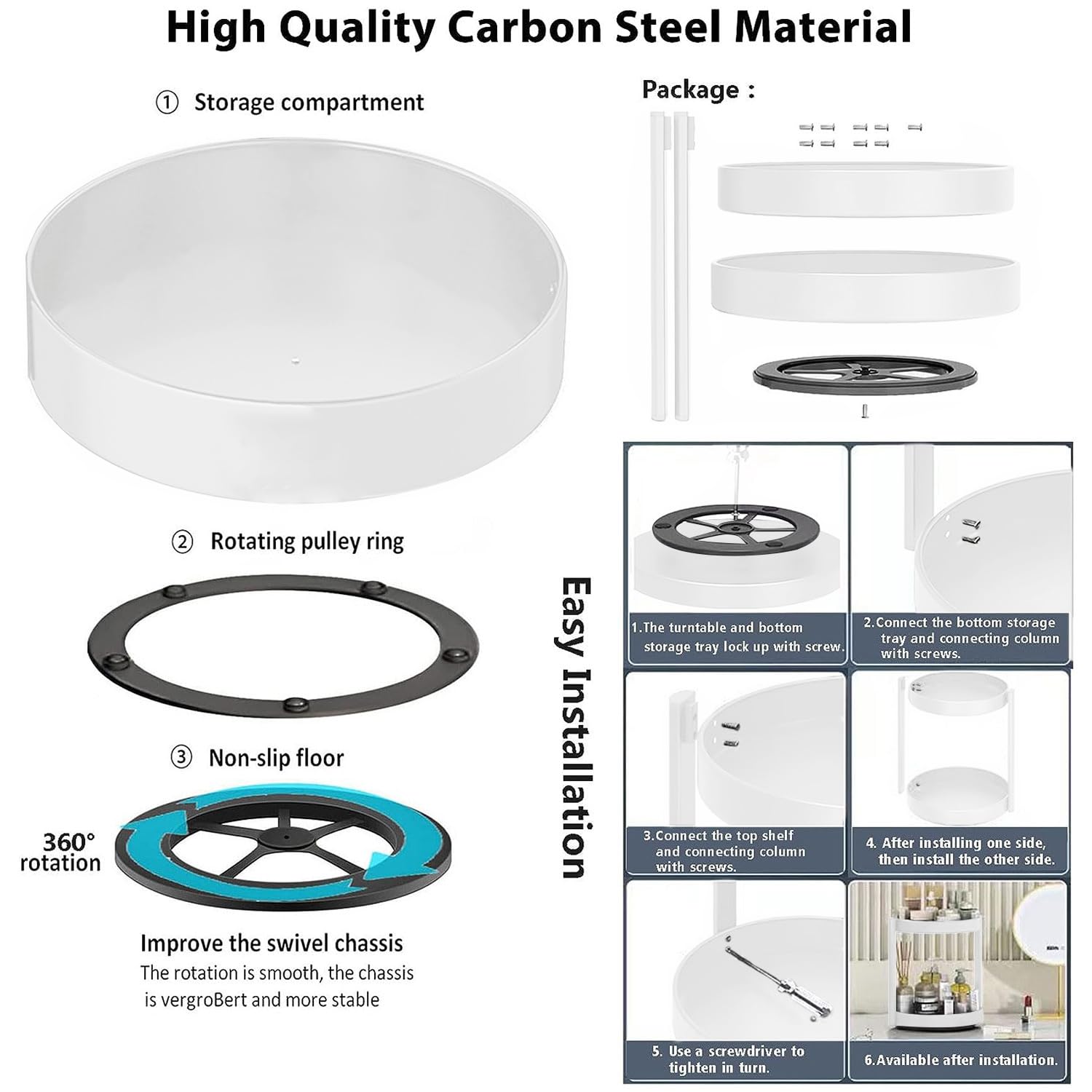 Portaspezie girevole a 3 piani in acciaio al carbonio nero, regolabile in altezza. Perfectto per organizzare spezie, cosmetici, detergenti e piccoli oggetti. Base girevole 360° per accesso facile. Facile da montare e pulire. Misure: 30x30x6.5 cm, 25x25x5 cm, 22x22x5 cm. Per cucina, bagno, soggiorno. Include tutti gli accessori per il montaggio.Caratteristiche e scheda tecnica