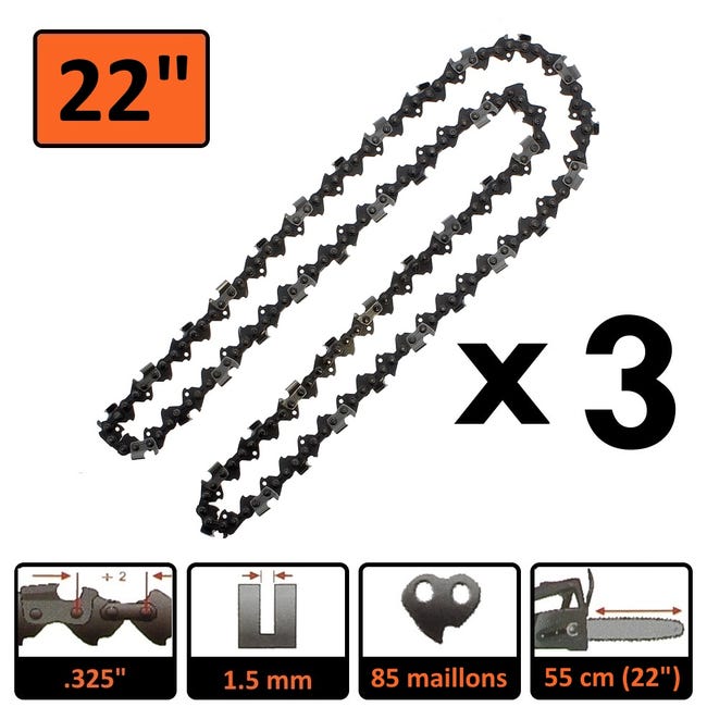 3 Catene Per Motosega 3/8'' 1,3mm 40 Maglie 25cm - Compatibili Con Makita DUC252Z