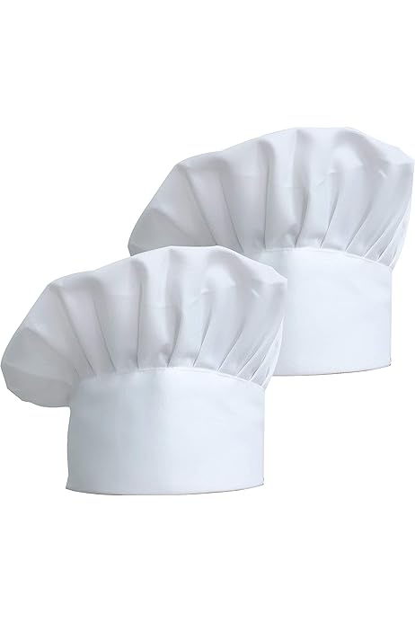 Questi cappelli da cuoco sono professionali e comodi! Confezione da 6 pezzi, regolabili (58-63 cm) e alti 22 cm. Materiale misto cotone e poliestere, traspirante e lavabile. La fascia interna assorbe il sudore. Li uso in cucina per tenere i capelli lontani dal cibo e sembrare un vero chef! Perfetti per ristoranti, panetterie o corsi di cucina. Prezzo ottimo per 6 cappelli. Un must per chi lavora ai fornelli!Caratteristiche e scheda tecnica